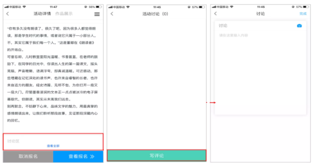 第三阶段:交流点评。参与者可以发表活动的想法,共同分享阅读