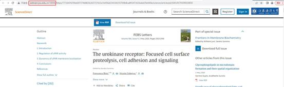 某篇文献地址为:https://www.sciencedirect.com/science/article/pii/S0014579309010850 ,若使用WebVPN需要将“www.sciencedirect.com/science/article/pii/S0014579309010850”信息输入WebVPN地址栏。