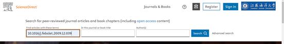 小贴士:ScienceDirect数据库中支持在“Find articles with theses terms”检索框中输入DOI(数字对象标识符)信息检索。