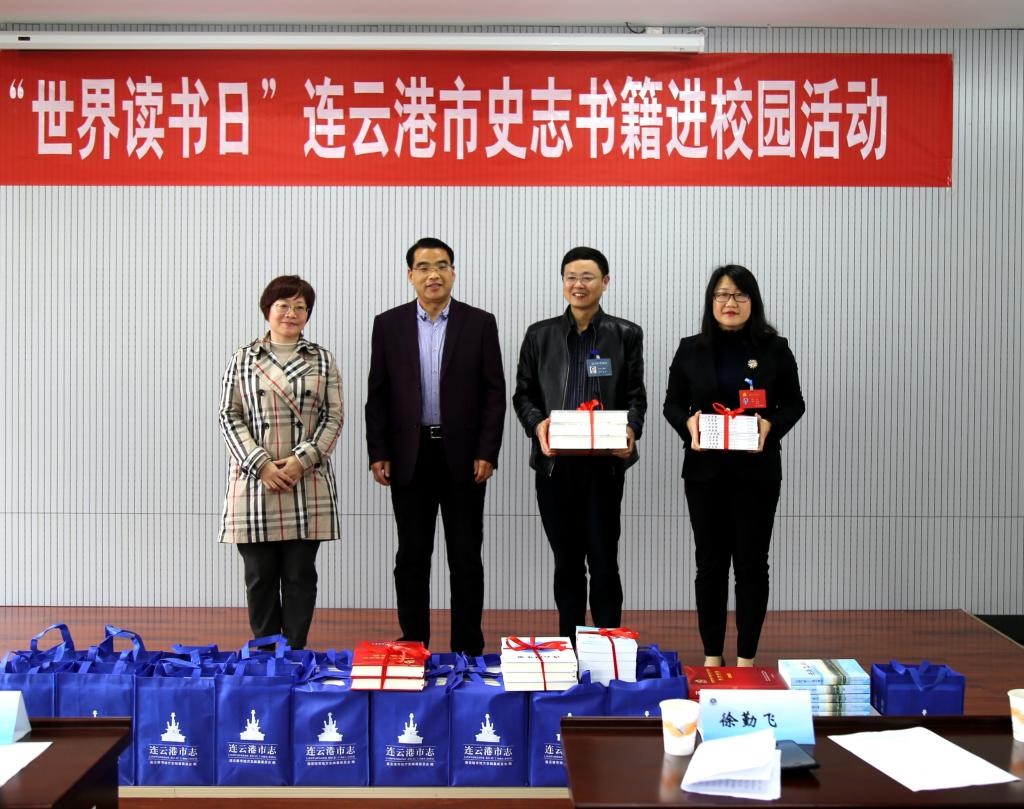 为弘扬地方历史文化,推动地情知识普及,4月24日下午,2019“世界读书日”连云港市史志书籍进校园活动暨史志图书捐赠仪式在图书馆东馆302室举行。淮海工学院教师及同学代表约100人参加了捐赠仪式。图书馆馆长曹伟平、副馆长艾华,市地方志办公室主任徐勤飞、副主任陆瑞萍及方志年鉴处有关领导出席了捐赠仪式。捐赠仪式由艾华主持。