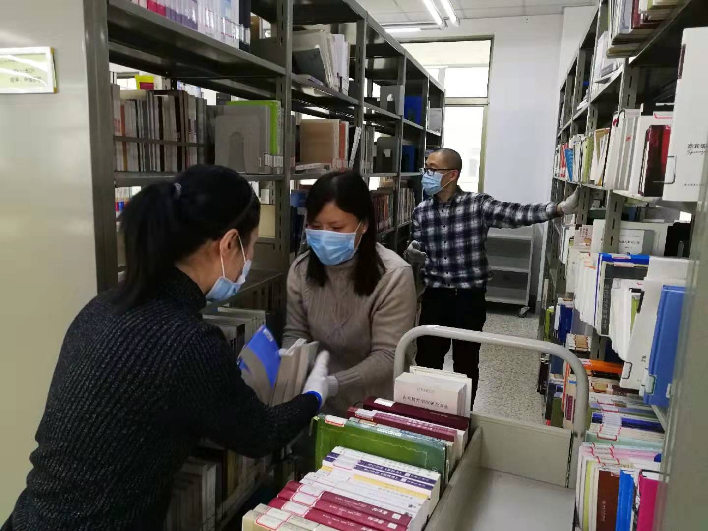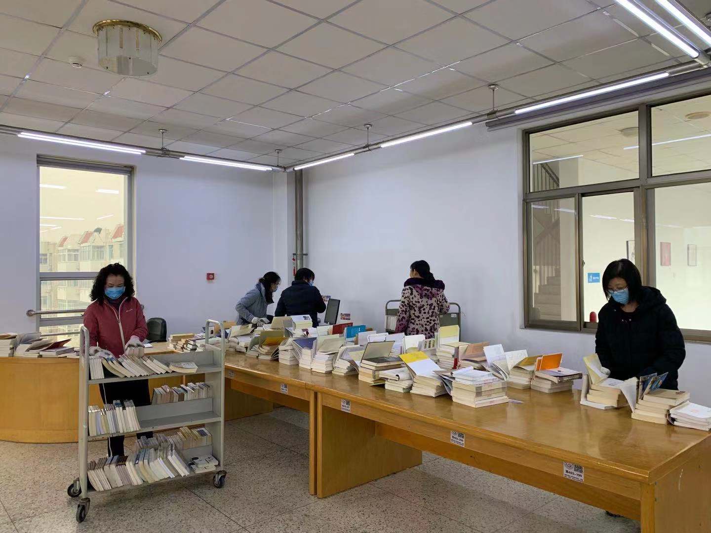 为了更好地满足学院广大师生学习工作的阅读需要,图书馆近期开始了17000册图书的调拨、整理、上架、排序工作。由于待上架图书量大,工作任务繁重,为了尽快完成上架工作,1月3日起,图书馆流通工作部教职工自觉坚守岗位,全力以赴开展图书上架整理工作。