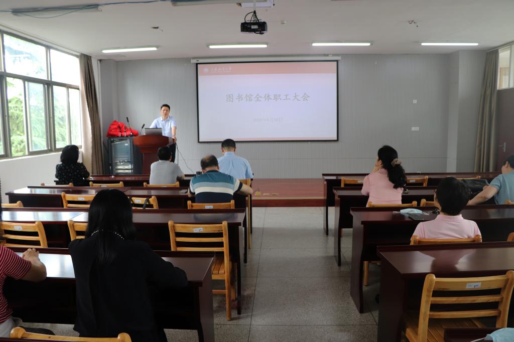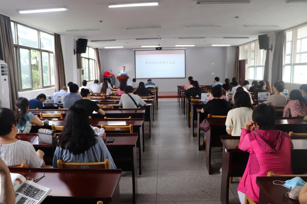 6月10日下午,图书馆在三楼会议室召开教职工大会,全体职工参加会议。副馆长艾华主持会议。