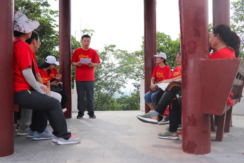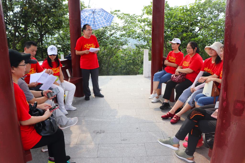 在白虎山山顶“海曙亭”里,副馆长田为付首先介绍了1928年中共东海特别支部成立那段光辉历史,并生动地讲解了李超时、惠浴宇、小叶的革命事迹。党员们参观了山上的建党纪念亭、纪念碑与翘石下的中共东海特别支部成立会议旧址。