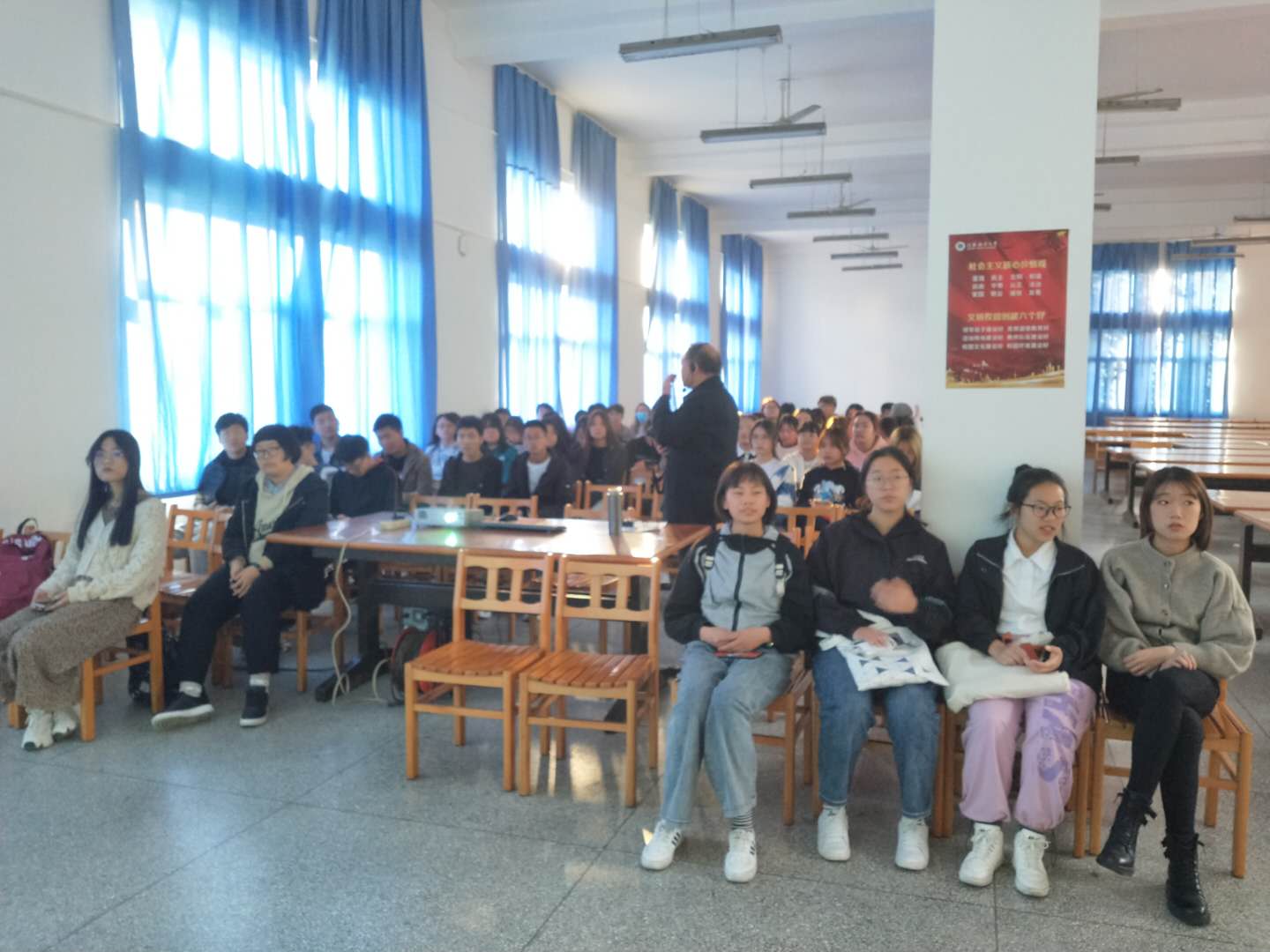 为提升教学效果,馆领导及授课教师共同讨论课件内容及授课细节,PPT授课内容丰富,课堂气氛活跃。徐加杰、刘玉梅、王晓芳、夏咏梅等十三位老师从图书馆概况、资源分布、开馆时间、借阅规定等方面作详细讲解,着重介绍了图书馆检索系统、各类型数据库、自助借还机借还书,宣传了图书馆近年开展的形式多样、内容丰富的阅读推广系列活动,激发了新生的兴趣,调动了新生参与活动的热情。