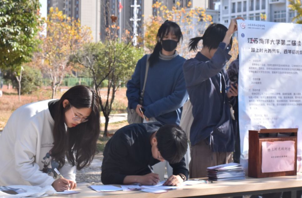 “踏上时光的列车,四年后的你与你有约”活动是江苏海洋大学第二届读书节活动之一,由校图书馆办公室和综合档案馆主办,面向2020级广大新生,旨在帮助2020级新生做好大学学习和生活规划,并以此为起点,怀奋斗之心,立鸿鹄之志,在大学四年的求学路上努力拼搏,不负青春.活动现场,同学们的热情空前高涨,都争相到服务台领取信纸信封,在工作人员的指引下踊跃参与。有的现场奋笔疾书,有的窃窃私语,有的低头沉思,有的与同伴不时交流想法,有的将已经写好的信件小心翼翼地装入信封,大家怀着一种对未来的向往和期许,完成了一封封具有特殊意义的信,同时也开启了一场历时四年的时光列车之旅。