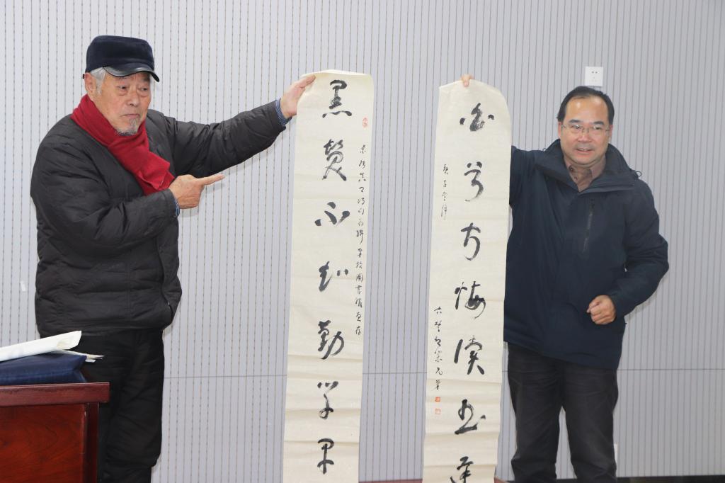 “品一口茶香,听一曲古琴,诵一首古诗,赏名家墨迹,谈一谈为人”,为全力打造具有海大气息的文化环境,为读者树立正确的人生目标。12月2日下午14:30,图书馆特邀江苏国画特聘书法师董立业教授,在图书馆东馆302报告厅,为来自不同系院的近60位师生举办了“书法与为人”专题讲座。图书馆艾华副馆长主持了专家讲座。