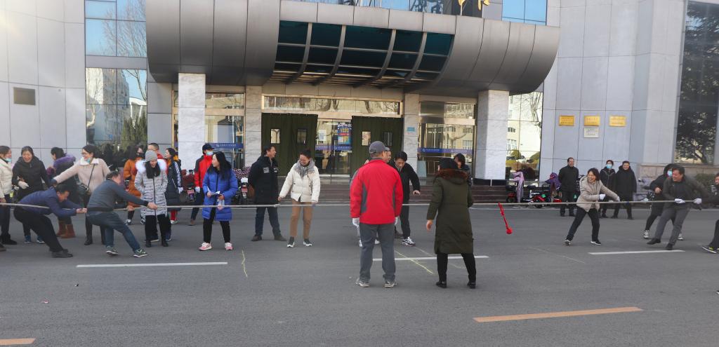 1月19日下午,为进一步增强图书馆凝聚力,展现图书馆人积极奋进、团结进取的精神面貌,图书馆分工会组织全馆各部门进行了一场拔河比赛,图书馆党总支书记王恒明、馆长曹伟平、副馆长艾华、田为付及图书馆全体职工参加了活动。