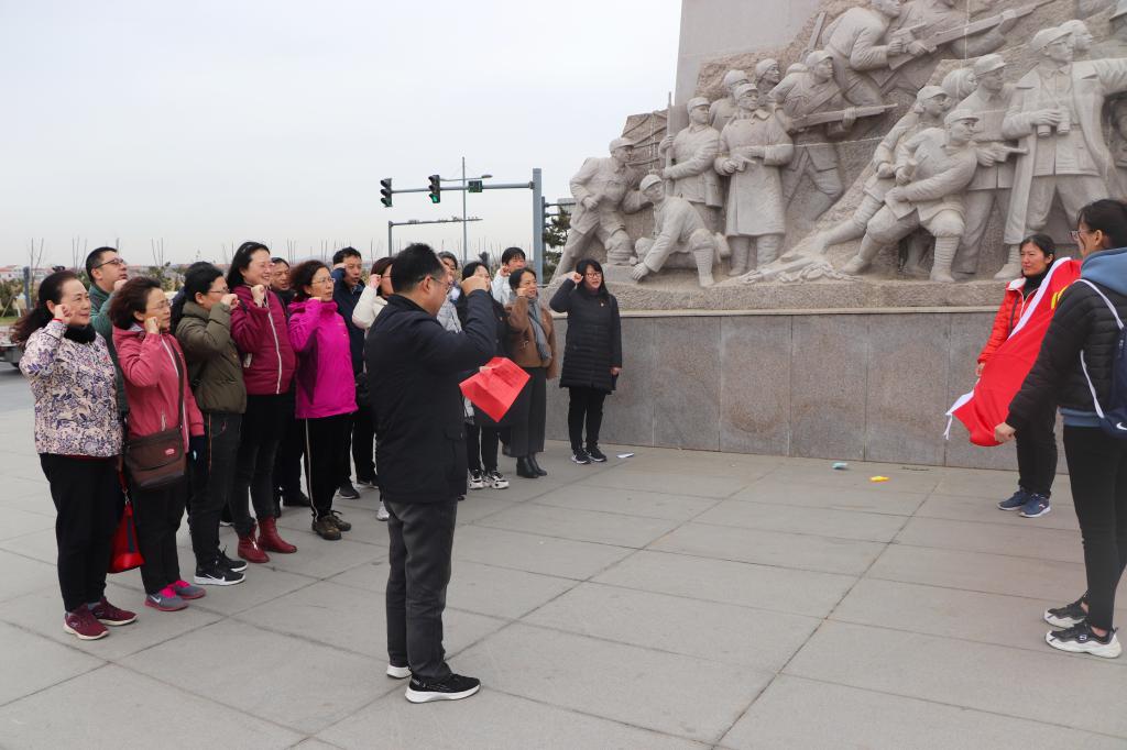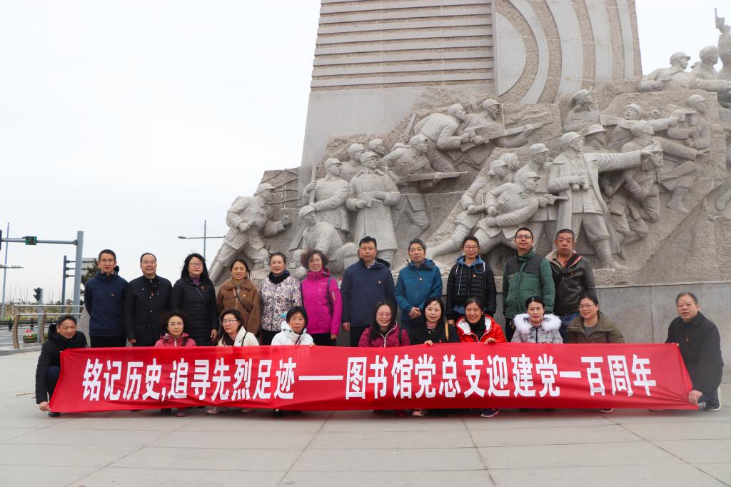 3月31日下午,图书馆党总支组织全体党员、民主党派一行25人,赴赣榆小沙东海战纪念雕塑碑,开展 “铭记历史,追寻先烈足迹——图书馆党总支迎建党一百周年党日活动”。