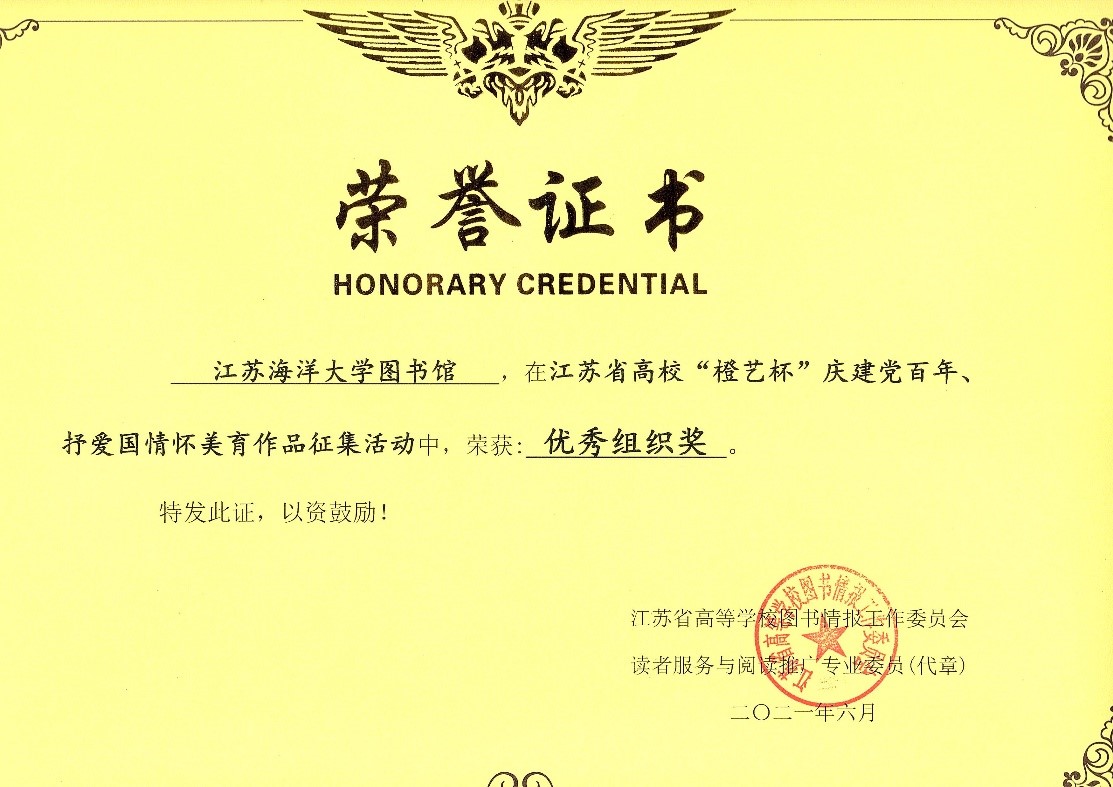 江苏省高校“橙艺杯”庆建党百年、抒爱国情怀美育作品征集大赛由江苏省高等学校图书情报工作委员会主办,南京艺术学院图书馆承办。大赛面向江苏省各图书馆读者征集主题相关的书法、绘画、摄影、海报、插画、漫画、卡通形象、表情包等多元的艺术展现形式。本次活动,全省共征集到来自72家高校3065个读者的3158件参赛作品。组织专家以线上方式进行入围作品评审的基础上,又组织专家线下对入围作品进行了终评,共选出“最具匠心奖”10名、“橙艺创意奖”20名、“最佳人气奖”20名、“优秀组织奖”18名。