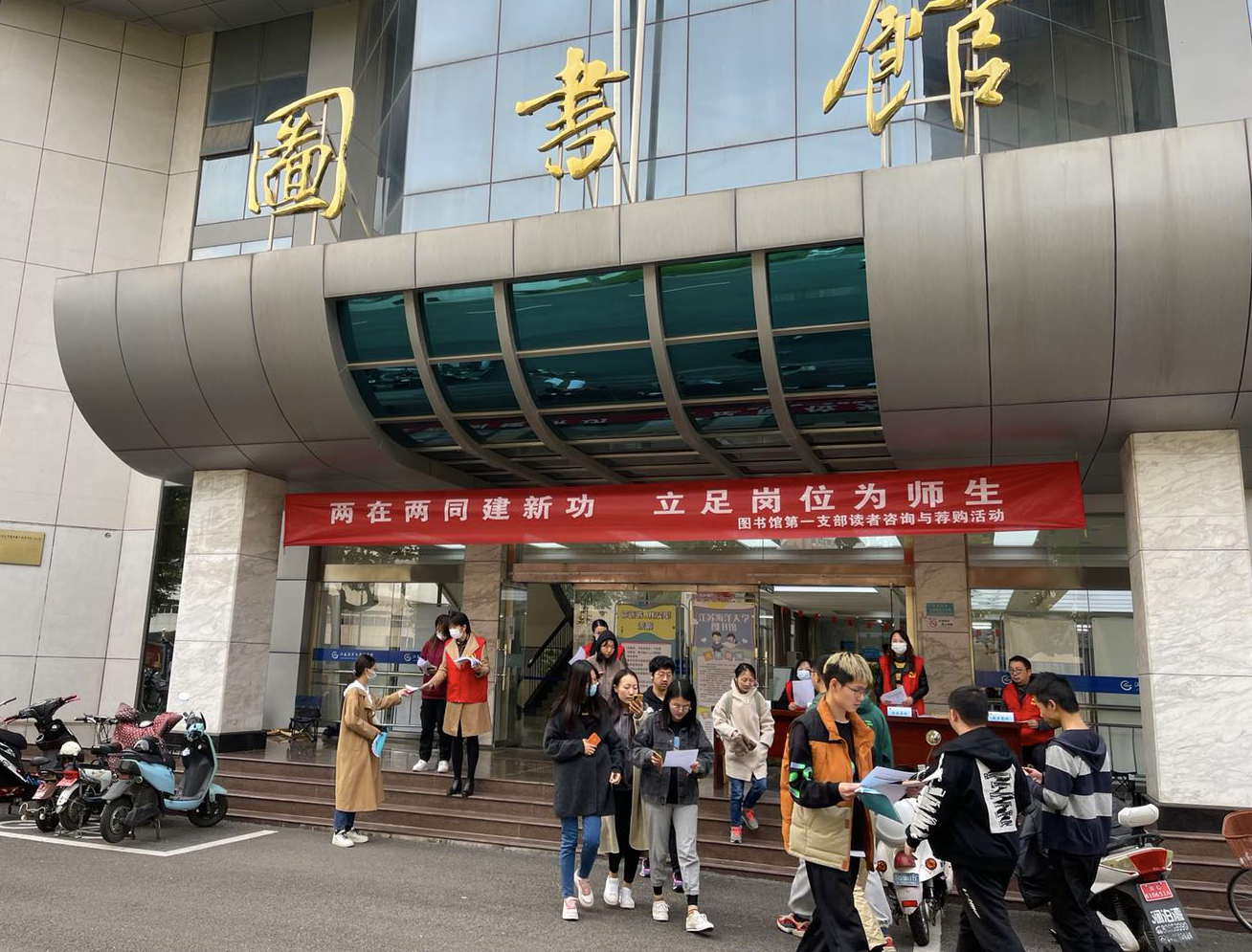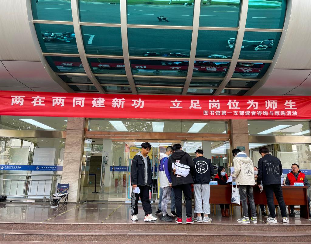为了以实际行动践行两在两同建新功,进一步增进了图书馆与读者的沟通交流及相互理解,使读者更加了解图书馆的服务和资源,图书馆第一党支部于10月26日下午在图书馆东馆一楼大厅举办了“两在两同建新功 立足岗位为师生” 读者咨询与荐购活动,这是图书馆改进管理水平和提高服务质量的又一重要举措。