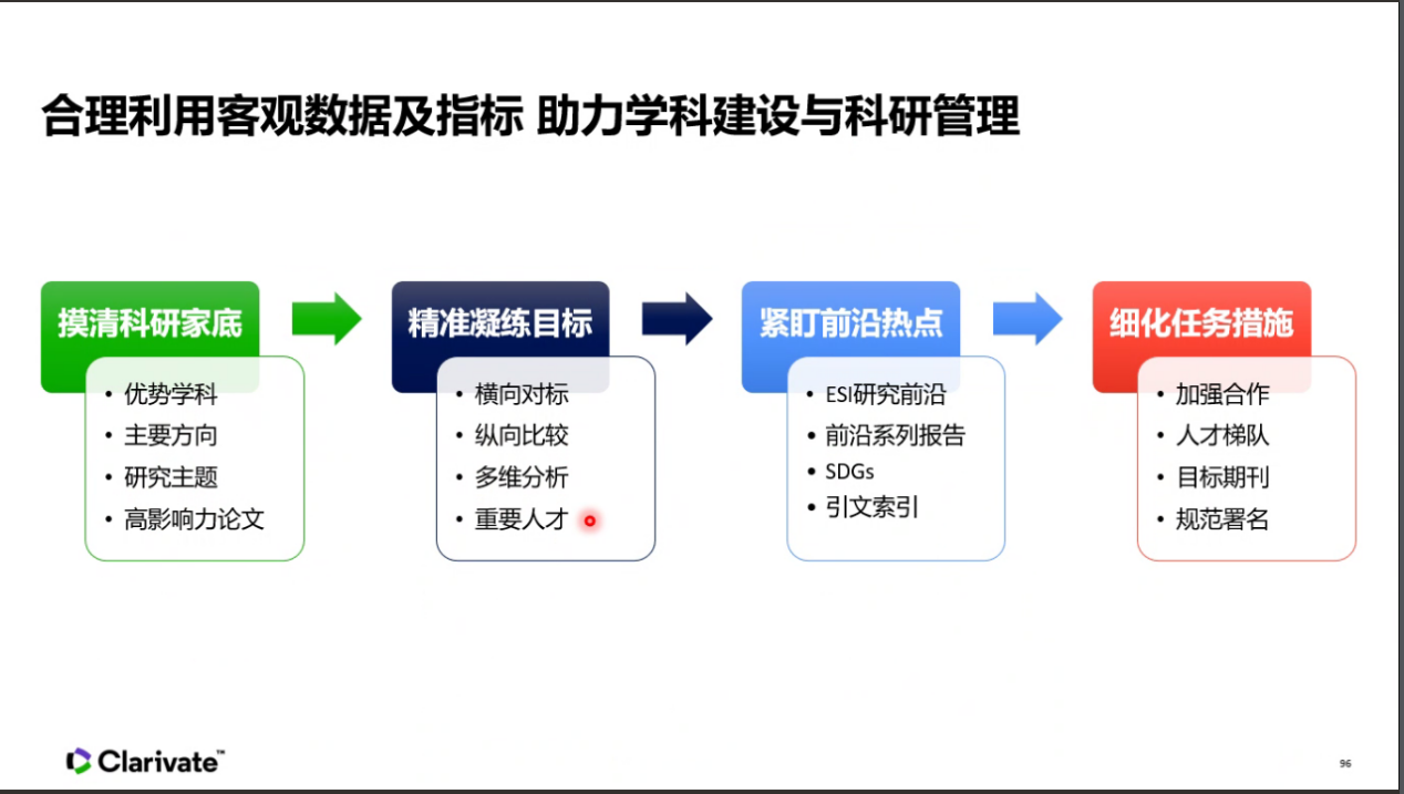 科睿唯安大中华区学术研究事业部高级客户经理赵宇受邀作题为“合理利用客观数据及指标,助力学科建设与科研管理”的专题报告。赵宇先生介绍ESI等科学计量学指标的概念、演变,以及在学科建设与科研管理工作中的合理应用;梳理我校及相关院校在ESI等指标体系下的影响力表现,如学科内排名情况、科研论文产出变化趋势、主要研究方向、主要发文期刊、重点研究人员与院系等;分享国内外高校如何利用客观数据与指标,助力科研与管理部门开展摸清科研家底、凝练目标方向、跟踪研究前沿、建设人才梯队等方面工作的做法与路径。 赵宇先生在充分占有数据的基础上,全面分析了江苏海洋大学工程学、植物与动物科学等学科的科研现状和学术影响力,并从精准凝练目标、紧盯前沿热点、细化任务举措、夯实信息基础等方面,给出了江苏海洋大学提升学科、科研影响力具体建议。数据翔实,针对性强。