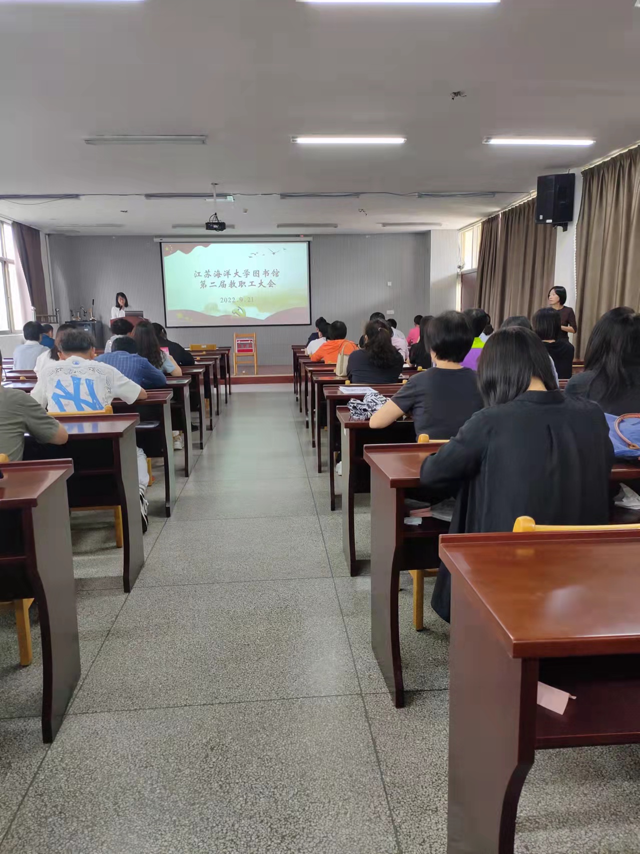9月21日下午,图书馆在三楼会议室召开江苏海洋大学第二届教职工大会。全体教职工参加大会,会议由党总支书记艾华主持。
