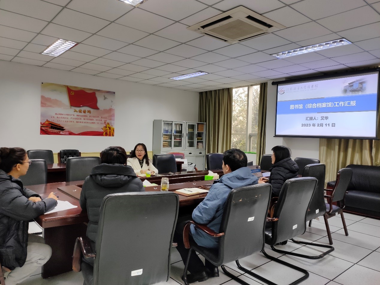 2月11日下午,副校长金芙蓉到图书馆调研工作,图书馆党政领导班子全体成员参加了调研会。