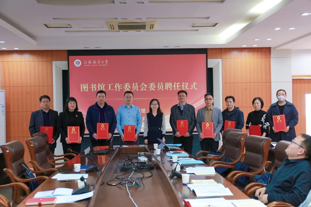 艾华首先宣读了《江苏海洋大学关于调整第二届图书馆工作委员会组成人员的通知》,随后举行了委员聘任仪式。副校长金芙蓉为新一届委员颁发聘书并合影。