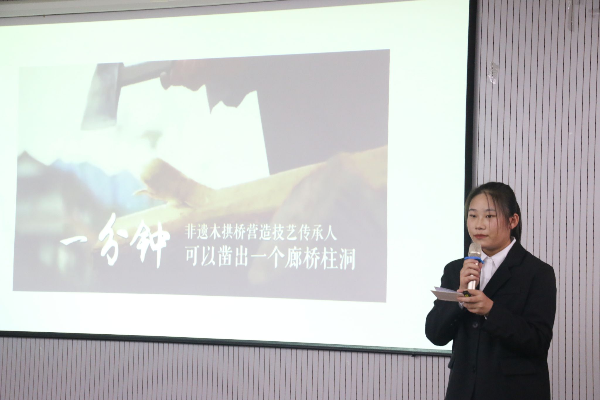 本次活动吸引了众多学生参与,在活动工作组精心筹备、周密安排下,从初赛中遴选出10名同学参与最终的复赛角逐,决赛在苍梧校区图书馆东馆三楼多媒体阅览室进行。参赛选手紧扣“弘扬中华优秀传统文化”主题,结合自身的阅读体验,将中华优秀传统文化中蕴含的有益思想、价值观念、爱国情感、思维方式及道德情操等融入其中,充分展示出中华优秀传统文化的厚重性和多样性。有宣扬非物质文化遗产的《了不起的中华非遗》、也有全面阐释中华文化的《中华优秀传统文化面面观》、还有弘扬传统文学的《中华传统文化古诗词之美》等等。选手们都自备了PPT与背景音乐,赋予演讲比赛全新的特色和风貌,呈现了一场声情并茂、美轮美奂的演讲盛宴。经过激烈角逐,商学院财务1211班孙艺楠等同学分获一、二、三等奖。
