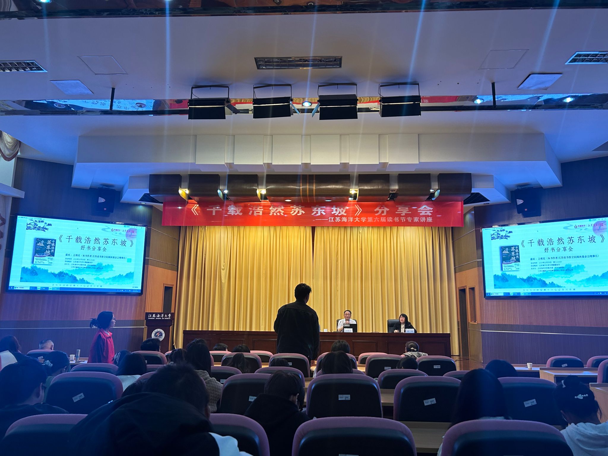 10月30日,我校图书馆举办了“千载浩然苏东坡”分享会,该活动也是江苏海洋大学第六届读书节活动之一,活动由图书馆党总支书记艾华主持,全校师生200余人参加,邀请《千载浩然苏东坡》一书的作者——汪维宏教授作为此次分享会的嘉宾。汪维宏教授是南京大学政府管理学院的博士,江苏省书香全民阅读基金会理事长、江苏省全民阅读促进会常务理事,先后担任南京大学、东南大学、湖南大学客座教授,在管理和出版领域拥有丰富的实践经验,参与撰写的《创先争优系列读本 & 做最好的共产党员》入选中宣部、新闻出版总署优秀通俗理论读物。汪维宏教授从乐观豁达、廉政爱民、宁静淡泊等方面,深入解析了苏东坡在多重角色中的人生智慧,重点围绕苏东坡为官从政的清正廉洁精神展开,生动讲述了苏东坡如何在逆境中自强不息、保持乐观向上的生活态度,以及他作为良吏廉吏的初心如磐、济世安民之心。汪维宏教授指出,苏东坡以其杰出的文学才华和独特的人生观,跨越千年时光,成为人们心中的精神榜样。
