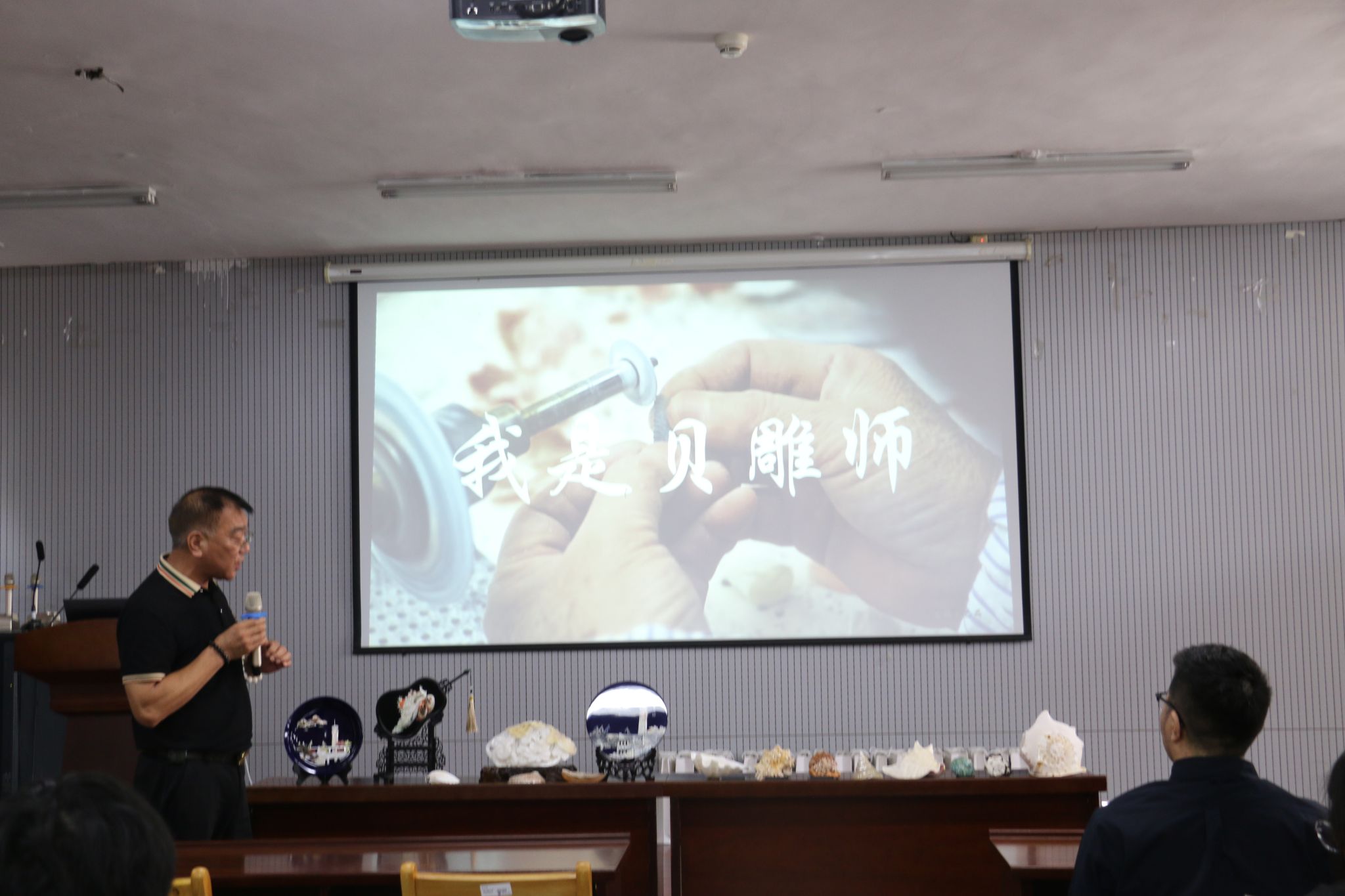 为深入营造“学海、知海、爱海、护海、强海”的校园文化氛围,响应学校第三届“海洋嘉年华”活动号召,图书馆于6月11日在多功能报告厅(东302室)举办“贝语潮音 手作传心”连云港海味非遗文化展示之贝雕技艺体验活动。本次活动聚焦江苏省省级非物质文化遗产代表性项目——连云港贝雕技艺,作为中国四大贝雕生产基地之一,连云港贝雕历史悠久,工艺精湛,承载着深厚的海洋文化底蕴,是连云港乃至江苏省重要的文化名片。活动特邀该项目省级非遗代表性传承人陈建国先生亲临现场,吸引了全校40余名学生参与,图书馆副馆长胡昌芹主持。