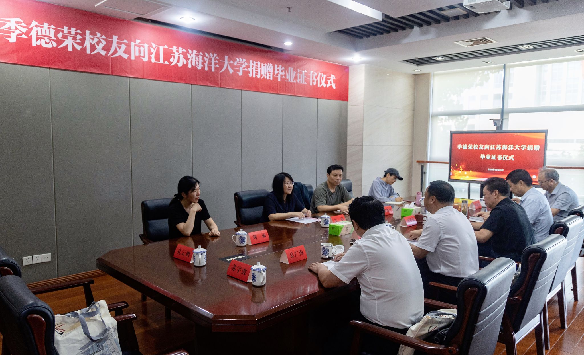 桂月怀恩,金风传脉。10月11日上午,在盐城市图书馆会议室,我校图书馆(综合档案馆)与盐城校友会、盐城市图书馆联合举办了一场特殊的捐赠仪式——78级校友季德荣将其珍藏四十五载的毕业证书郑重捐赠给母校。我校图书馆党总支书记、馆长艾华与综合档案馆馆长田为付共同代表学校接受捐赠。盐城校友会会长刘如山、轮值会长吴广海、司正庆和优秀校友江志栋等,以及盐城市图书馆与我校的相关工作人员参加仪式。捐赠仪式由刘如山主持。