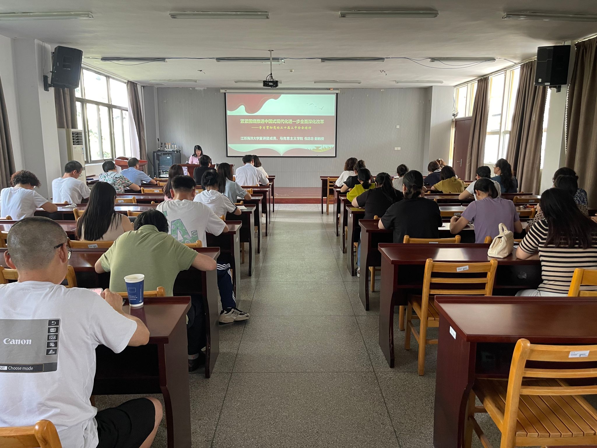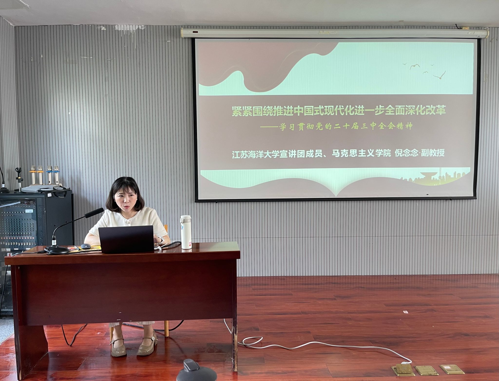 倪念念以“紧紧围绕推进中国式现代化进一步全面深化改革——学习贯彻党的二十届三中全会精神”为题,从深刻认识召开全会的重要意义、深入学习领会习近平总书记在全会上的重要讲话精神、全面准确理解《决定》提出的进一步全面深化改革重大举措、全力以赴抓好全会精神贯彻落实等方面,进行了全面系统的阐释和宣讲。报告指出,党的二十届三中全会是在以中国式现代化全面推进强国建设、民族复兴伟业的关键时期召开的一次十分重要的会议。习近平总书记在全会上的重要讲话,深刻回答了进一步全面深化改革、推进中国式现代化的一系列方向性、根本性重大问题。全会《决定》明确了进一步全面深化改革的总目标,重点部署了未来5年改革任务。学习好、贯彻好、落实好全会精神,要同学习领会习近平总书记关于全面深化改革的一系列新思想、新观点、新论断结合和贯通起来,加强党对进一步全面深化改革全过程的领导,以钉钉子精神抓好各项改革任务的落实。报告中,重点对深化教育综合改革,特别是对分类推进高校改革、加强创新能力培养、完善高校科技创新机制等方面,进行了深入解读。